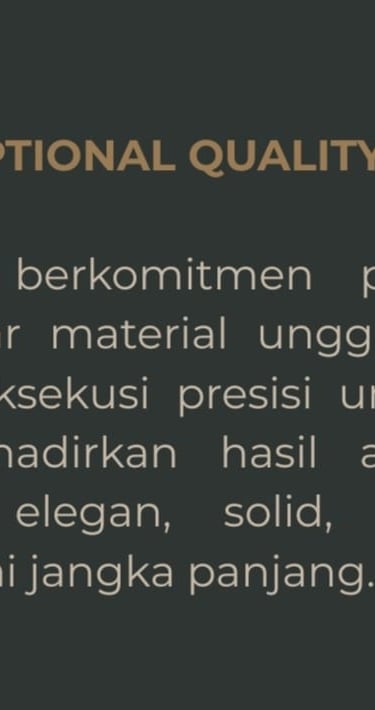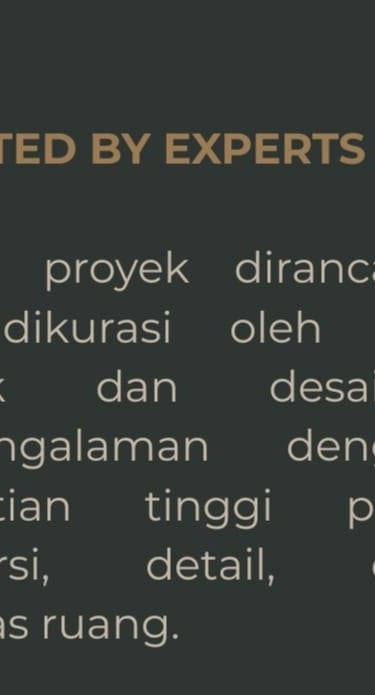 Merupakan proses penerjemahan mimpi ke dalam bentuk nyata melalui perencanaan yang matang, kreativitas, dan ketepatan teknis. Design menyatukan estetika dan fungsi, menciptakan ruang yang tidak hanya indah secara visual, tetapi juga nyaman, efisien, dan berkelanjutan. “Setiap desain dirancang dengan presisi, kreativitas, dan standar profesional.”